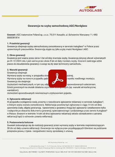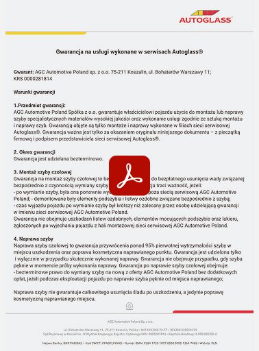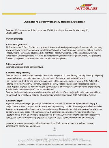 Gwarancja na szybę samochodową marki AGCNG.